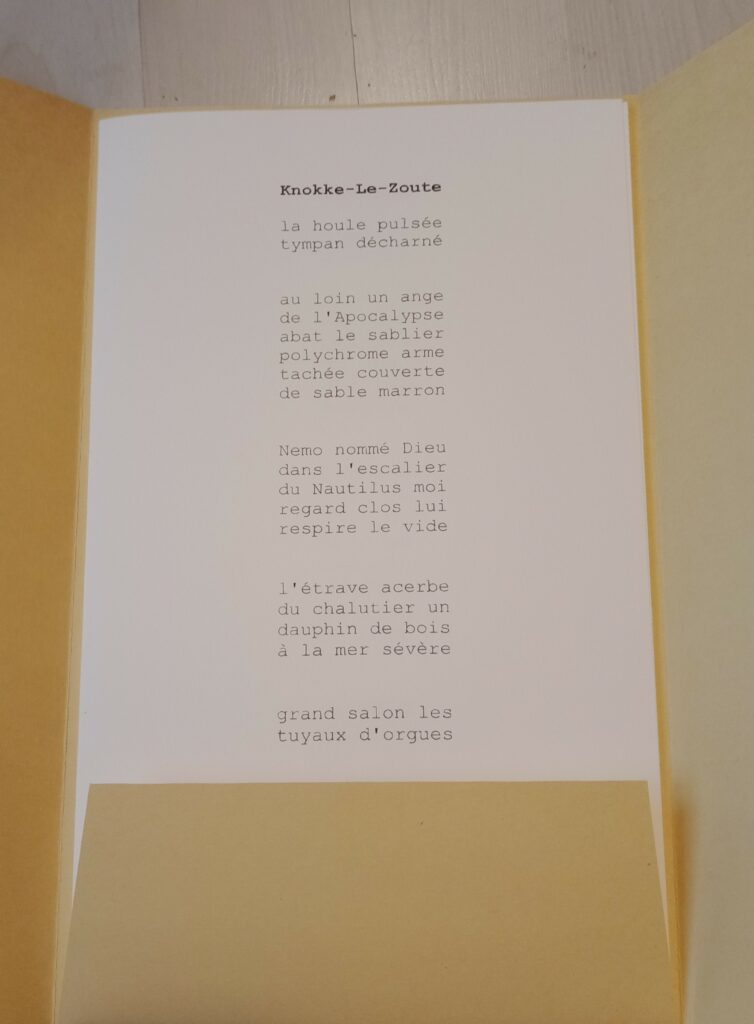 Cette lecture accompagne la sortie du portefolio « Chapelet des plages » qui regroupe 7 sérigraphies de poèmes justifiés, ainsi qu’une autre estampe qui se nomme « le stylo quatre couleurs du Nord Pas de Calais »
