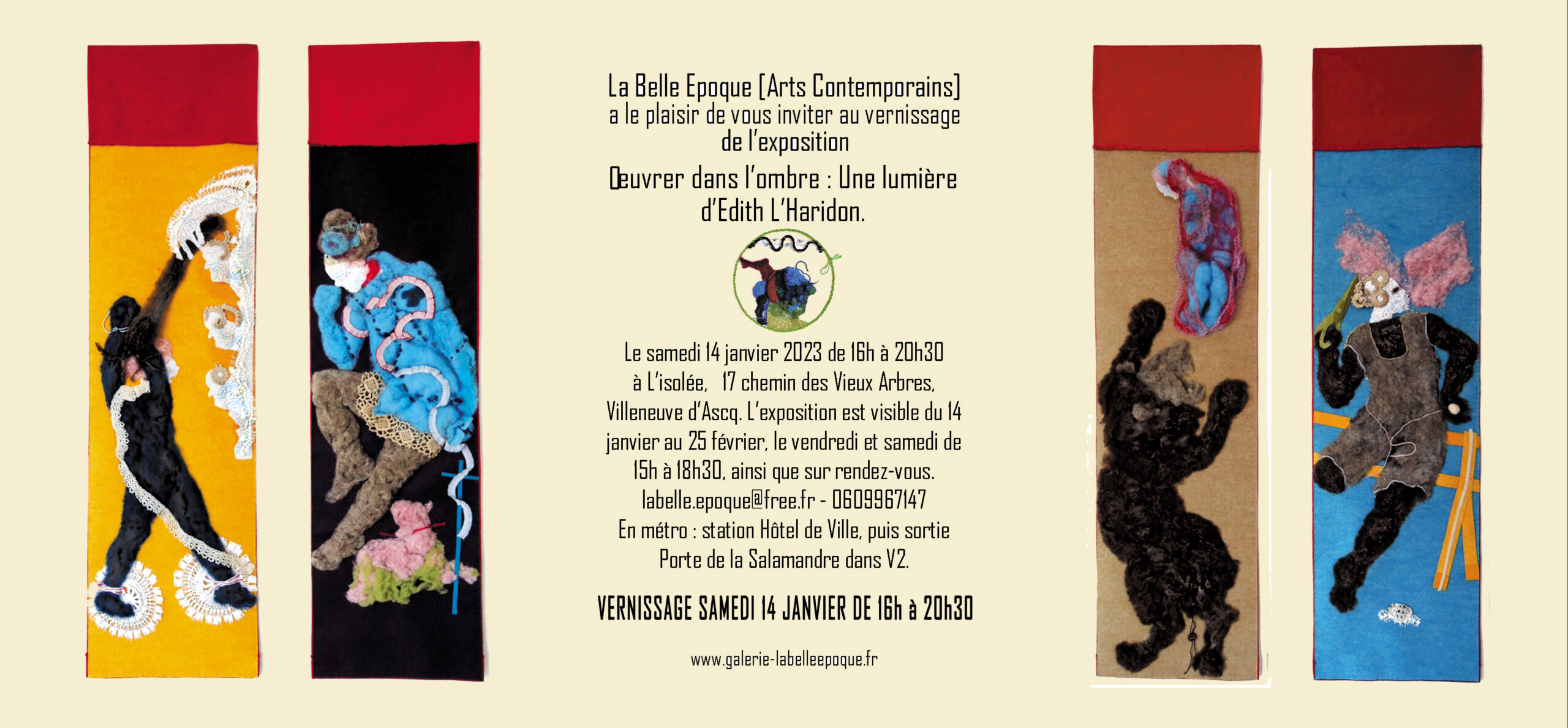 Invitation Edith L’Haridon Published 23 décembre 2022 at 2560 × 1190 in Oeuvrer dans l’ombre : Une lumière. Exposition Edith L’Haridon à L’isolée le 14 janvier 2023