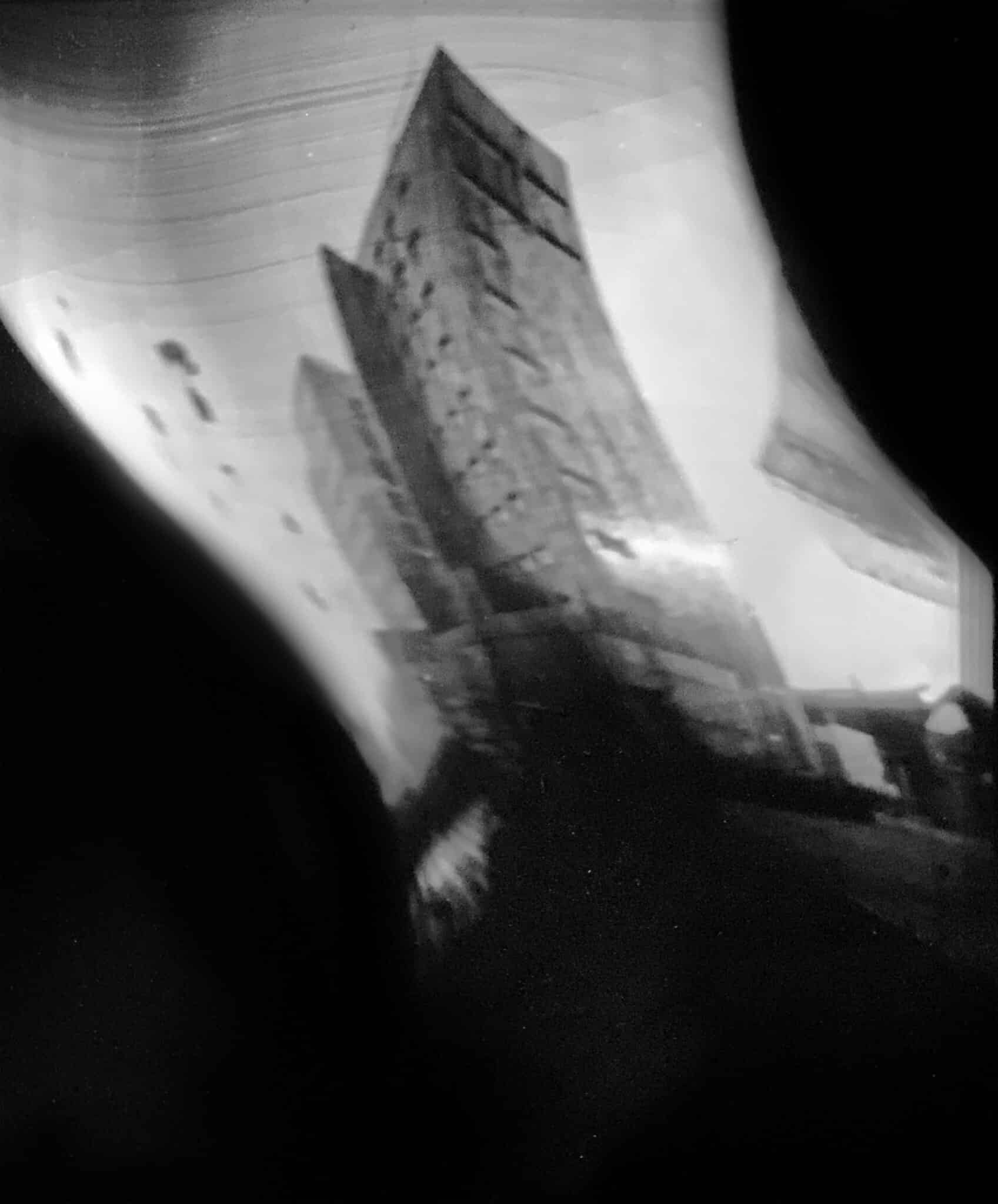 Photographies réalisées au sténopé sur film grand format, au fil de l’agitation de la ville. Ces images lentes révèlent une lumière glissante, parfois nocturne, entre abstraction et trace. Une exploration sensible des seuils du visible, dans une matière d’image instable et presque abstraite.