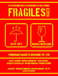 La Belle Epoque a le plaisir de vous inviter à sa double exposition FRAGILES VERNISSAGE SAMEDI 15 NOVEMBRE 17H – 21H – Edith L’Haridon – Alain Biet – David Gommez – The Pit – Bernard Guerbadot – Jacques Flechemuller – Daphné Corregan – Gérard Duchêne – Bernard Pourrière/Philippe Richard – Coté éditions :Alain Biet :…
